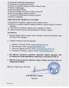 Ikindi kandi ni uko ibi bikorwa byose byemerewe gukomeza bizajya bifunga saa kumi n’ebyiri z’umugoroba.