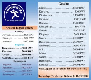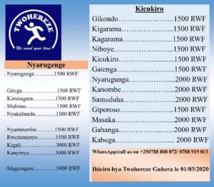 MURI IBI BIHE BYA GUMA MU RUGO TWIRINDA IKWIRAKWIRA RY’ICYOREZO CYA COVID-19 TWAKIFASHISHA TWOHEREZE DELIVERY COMPANY MU KUTUGEZAHO IBYO TWAGUZE, BYABA IBYO KUNYWA, KURYA,NDETSE NA COURIERS ( IMIZIGO).