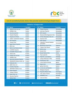 “Effective 9 August 2021, the price of a rapid diagnostic test for Covid-19 in private clinics shall not exceed Rwf5,000,” RBC said in a statement posted on its Twitter.